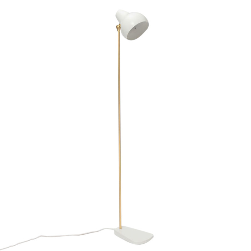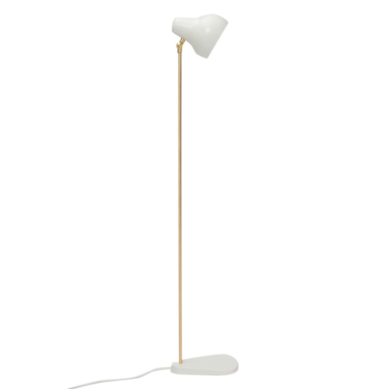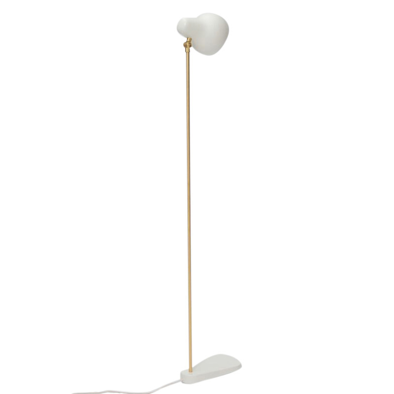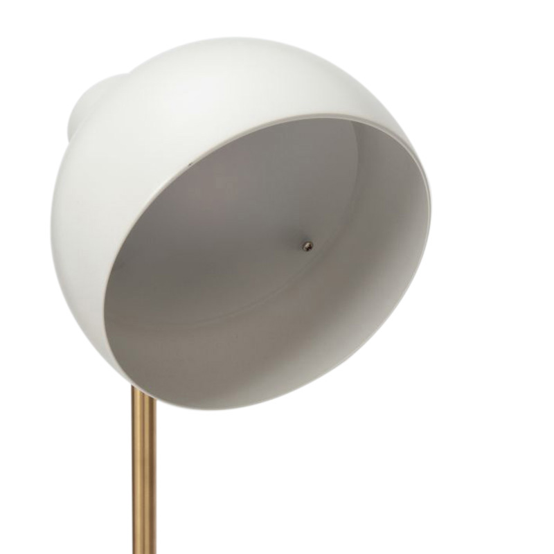 ホワイト塗装されたシェードは、ペアシェイプ(梨型)の美しい有機的フォルムで傾斜し、そのシェードを上下に稼動させるアーム部分は、真鍮製となっています。