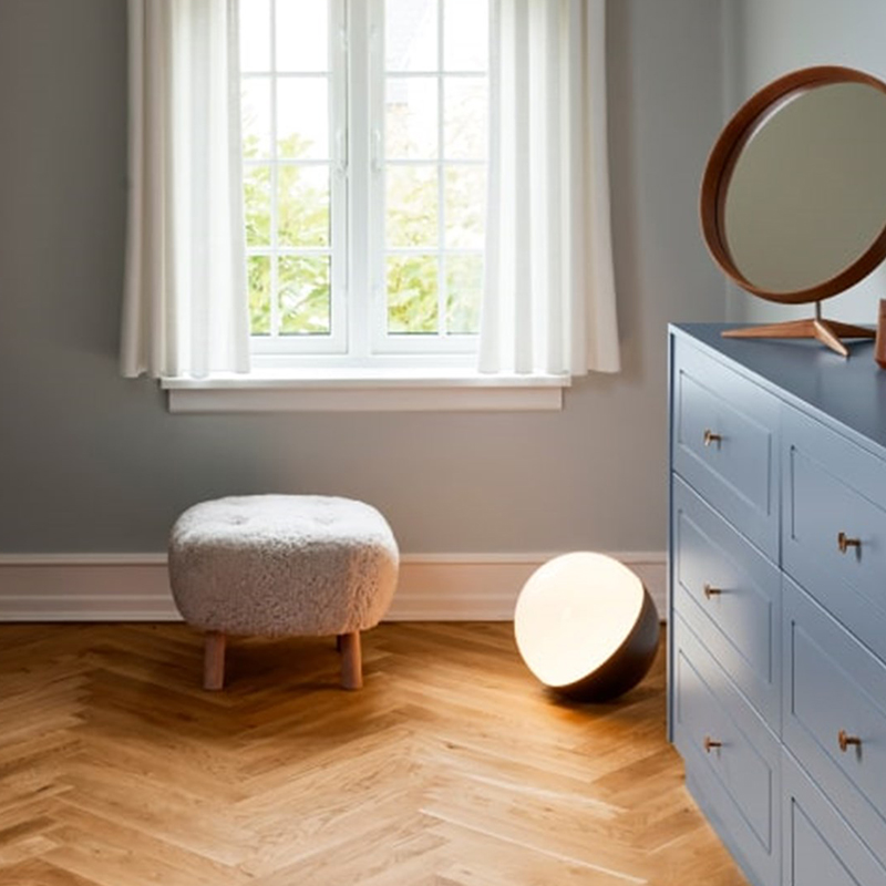 ラジオハウス内の別の空間でもこのランプは使用されていましたが、“スタジオランプ”とは異なり、乳白のガラスシェードで温かみのある雰囲気を作り出すランプも使用されていました。