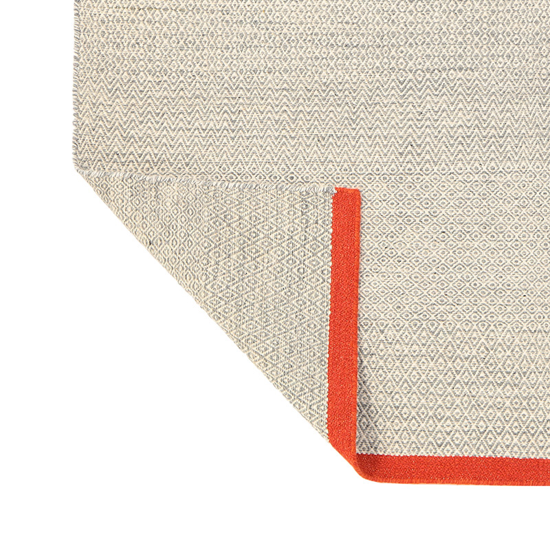 インドの職人によって織りから染色まですべて手作業で作られたキリムは、菱形と四角形の幾何学模様とソフトな手触りがポイントです。
