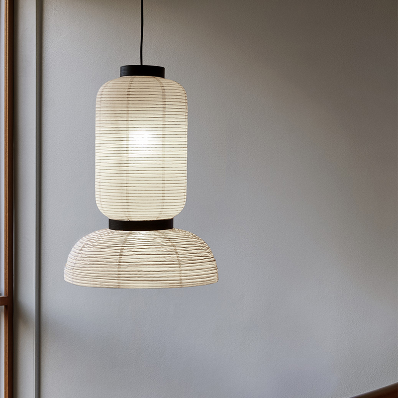 このシリーズは、3種類の異なる提灯タイプと、ブラックステイン・オークのアクセントが付いたアイボリーホワイトペーパーを使ったテーブルランプで構成されています。