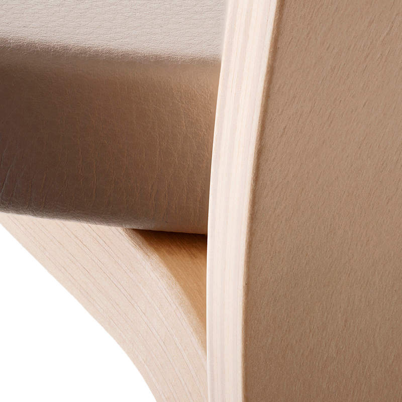 頑丈なフィンランド産のバーチ材を用いた広めの背もたれは、腰掛けると程よくしなることで快適にくつろぐことができ、その大きく穴のあいたデザインは持ち運びにも便利です。
