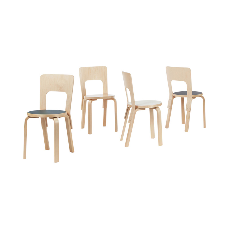 ・直射日光に当たる場所では自然な色の変化が早く現れます。アルヴァ・アアルトが手掛けた「66 チェア」は、キッチンやカフェで見かける伝統的な木製椅子の原点ともいえる、シンプルで分かりやすい構造と普遍的なデザインです。