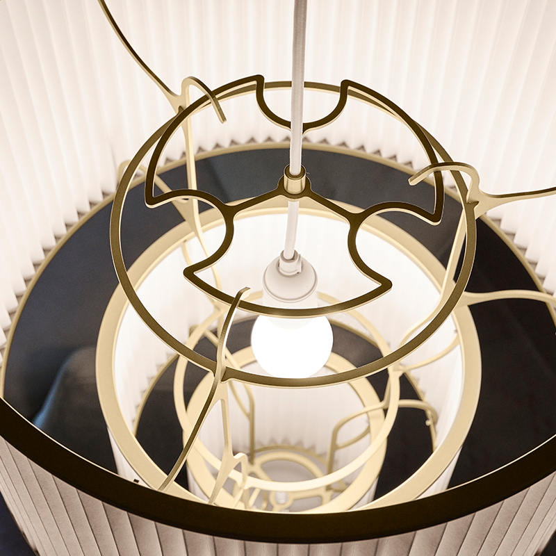 遠目にはシンプルに見えますが、シェードの内部はゴールドのアーチとフレームが支えていて、見れば見るほどに味わい深いデザインです。