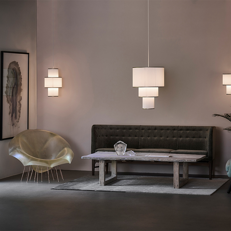 手仕事による伝統の折りはそのままに、新しく、美しいインスタレーションのような使い方もできる照明が完成しました。