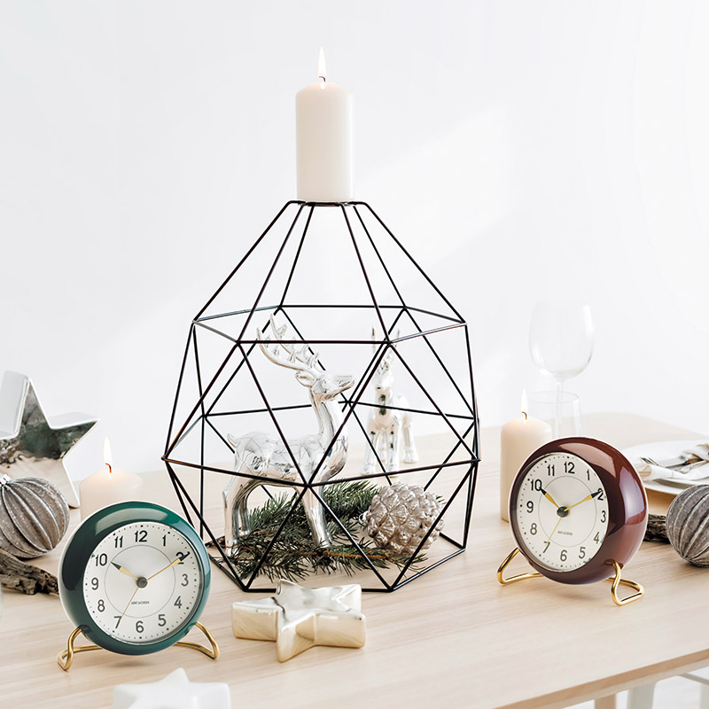 機能美を追求したバウハウスのデザイン哲学が世界のデザインに多大な影響を与える中、アルネ・ヤコブセンはLK社と共同で進めていたテーブルクロックのプロジェクトなかで、より視認性が高く、誰が見ても一目で時間がわかる最もシンプルなアラビア数字のフォントをインデックスに使用したテーブルクロックを制作しました。