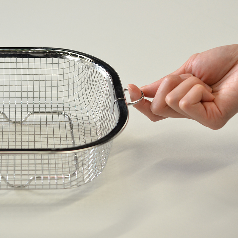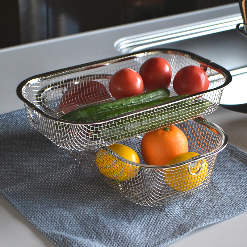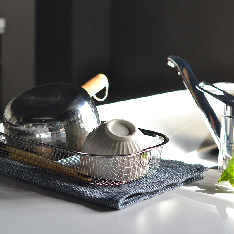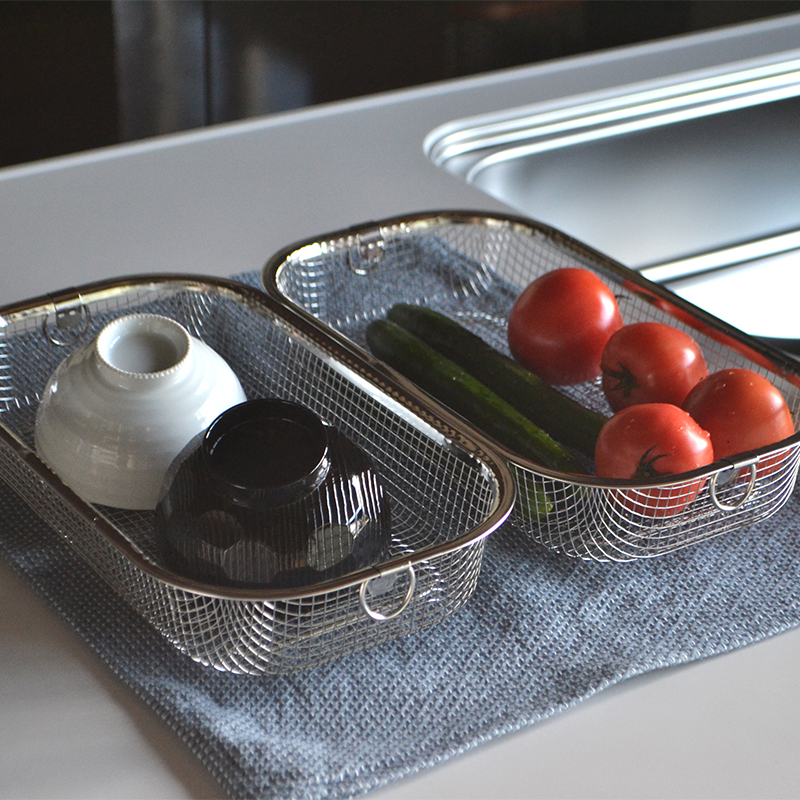 カゴの目が細かいので、ちょっとしたお皿や小物などはもちろん、野菜などの水切りザルとしても便利。場所を選ばずに使えます。