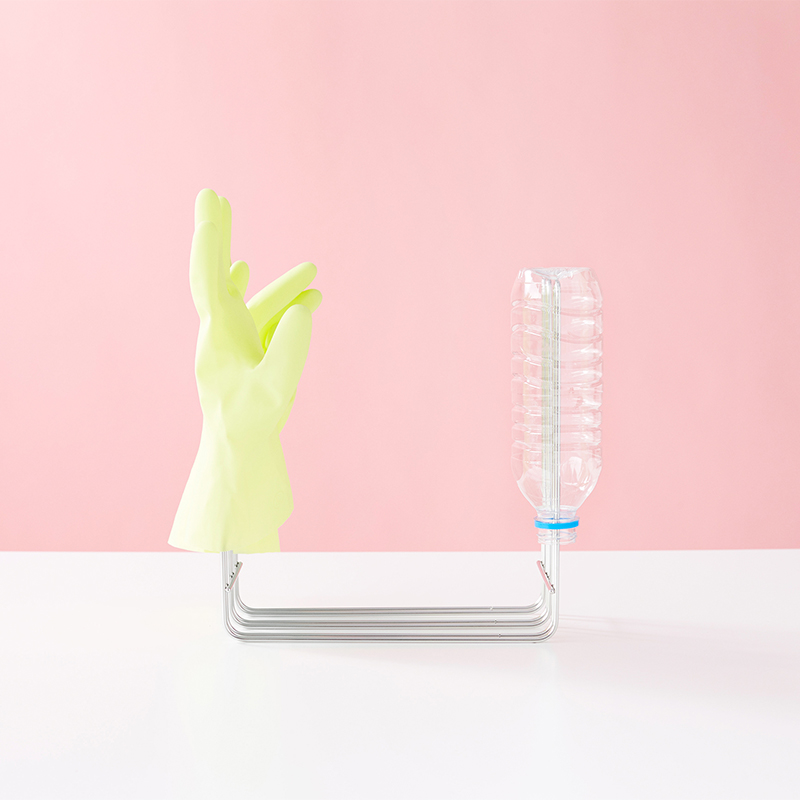 タテに置けば「ペットボトル」や「ゴム手袋」、また2枚のまな板をハンガーの脚の間に渡して、すき間をあけて乾かせます。