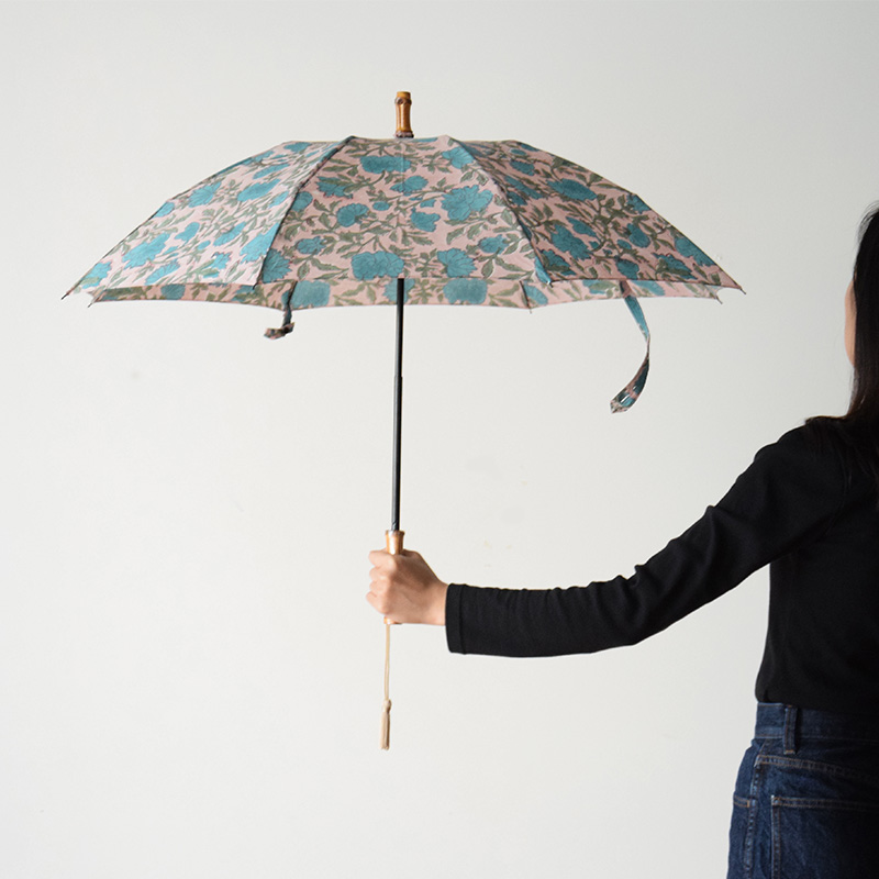 絵柄は静岡県の「浜松注染」によって染められています。染めの職人、傘の職人など様々な熟練者の手を用いて一つ一つ丁寧に作られています。