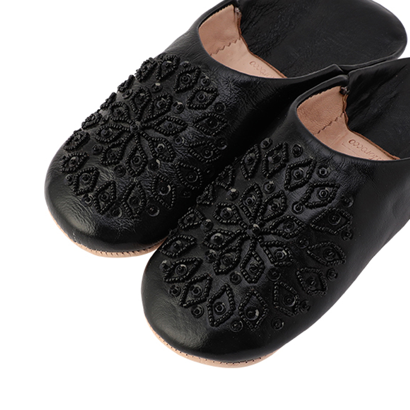 バブーシュやバスケット、地元で買い付けたキッチン雑貨やベニオワレンラグなど、幅広いアイテムを取り扱っています。1つ1つ縫い付けられたスパンコールやビーズで見た目も楽しめる人気のデザインです。