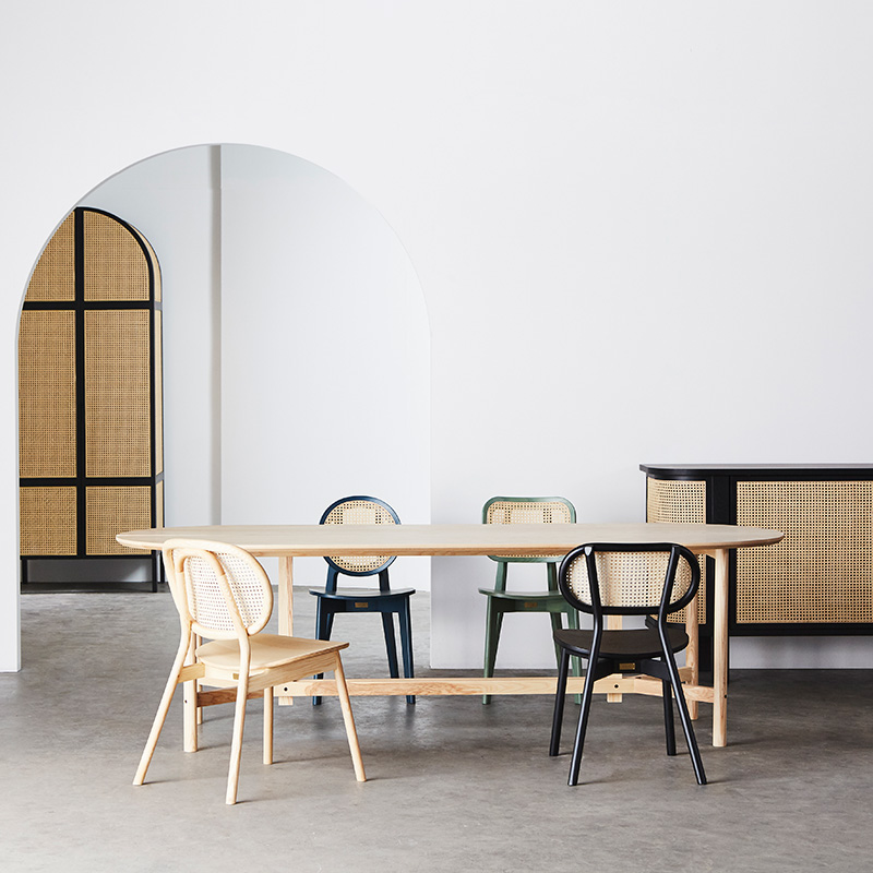 「イースト・ミーツ・ウエスト」をテーマにしたCANEコレクションは、タイの木工会社で長い歴史と専門知識を持つPODIUM工場で製造されています。