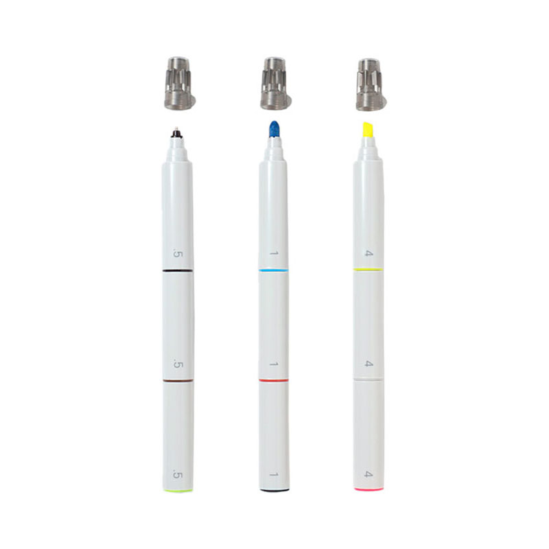 蛍光・太字・細字がそれぞれ3色ずつ、計9種が1セットになっており、自由に組み替えることができます。自分だけの固定した定番をつくるもよし、使い道に合わせて毎度組み替えるもよし。使い方に無限の可能性が待っています。