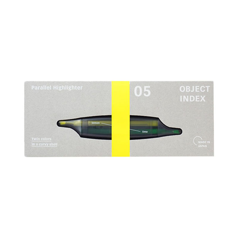 2色のリフィルが平行して並ぶ、ユニークな形の蛍光ペン。