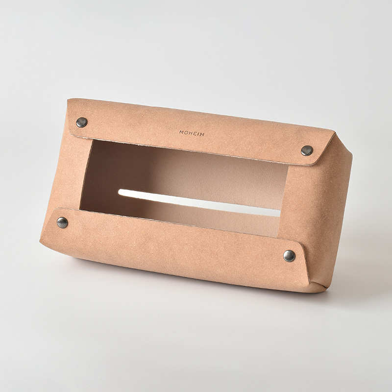 MOHEIMのプロダクトに共通するのは、時を経ても古びることのない、ミニマルでシンプルなデザイン。伝統的な技法や高度な技術を用い、時代に沿ったエシカルな考え方でカタチにしています。プロダクトを手にした人の生活を豊かに変える?MOHEIMは「新しいスタンダード」を創造するブランドです。ミニマルな美しさを追求したレザー製ティッシュカバー。レザーを縫い合わせるステッチまでもを最小限に抑えるなど、装飾的と捉えられうるすべての要素を削ぎ落としました。
