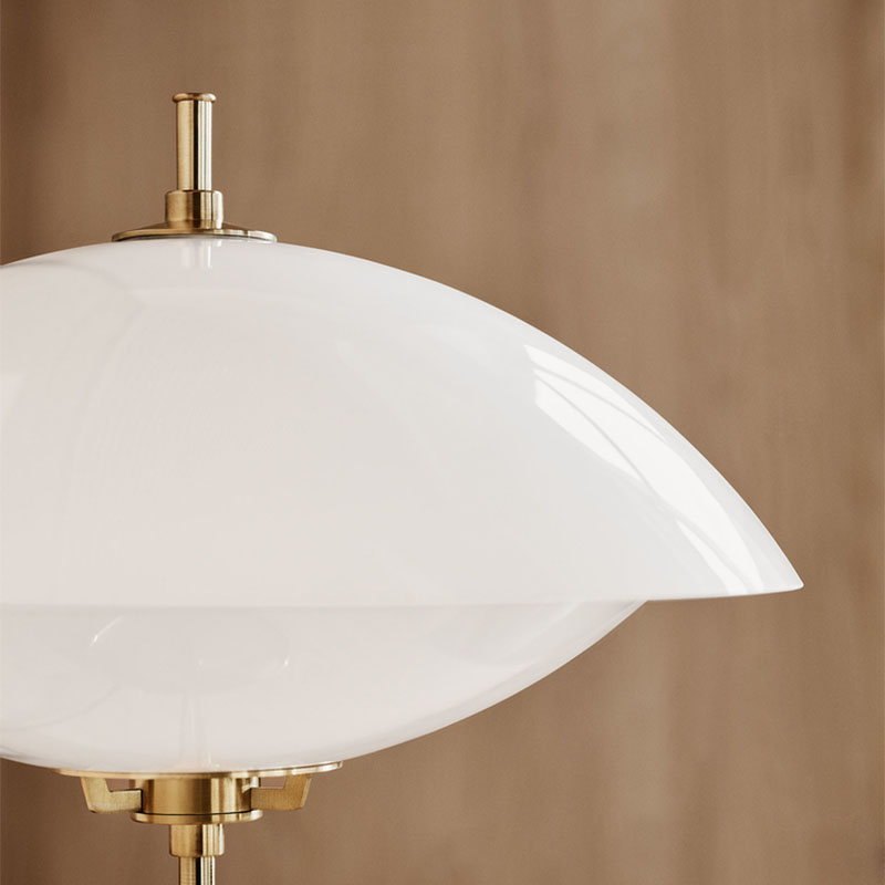 まるで真珠を宿す貝のように、手吹きオパールガラスを使ったシェードから温かい光を拡散させます。