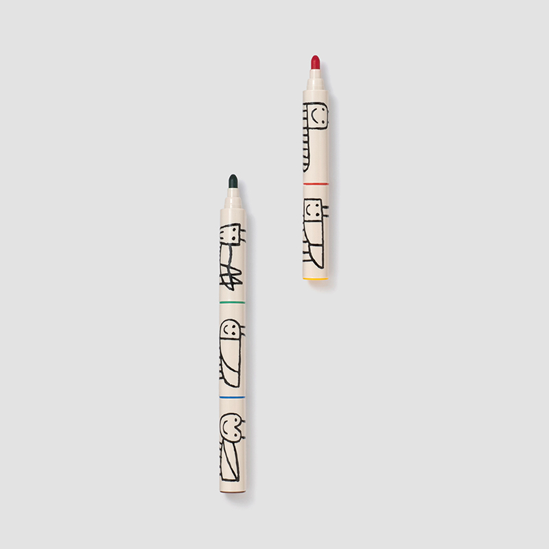 ・製造:エポックケミカル赤、黄、緑、青、茶の5色が一本になったマーカー。