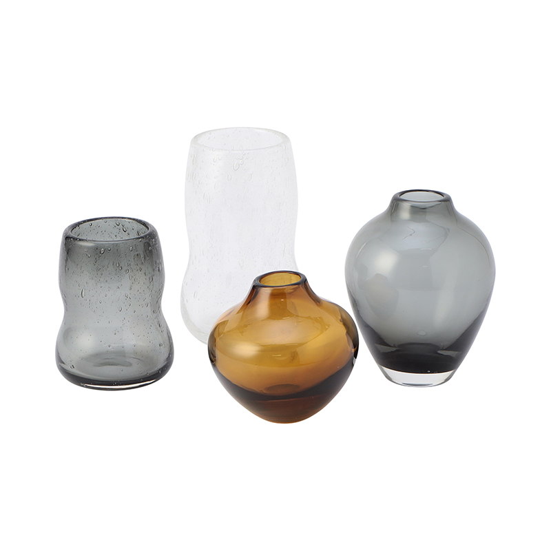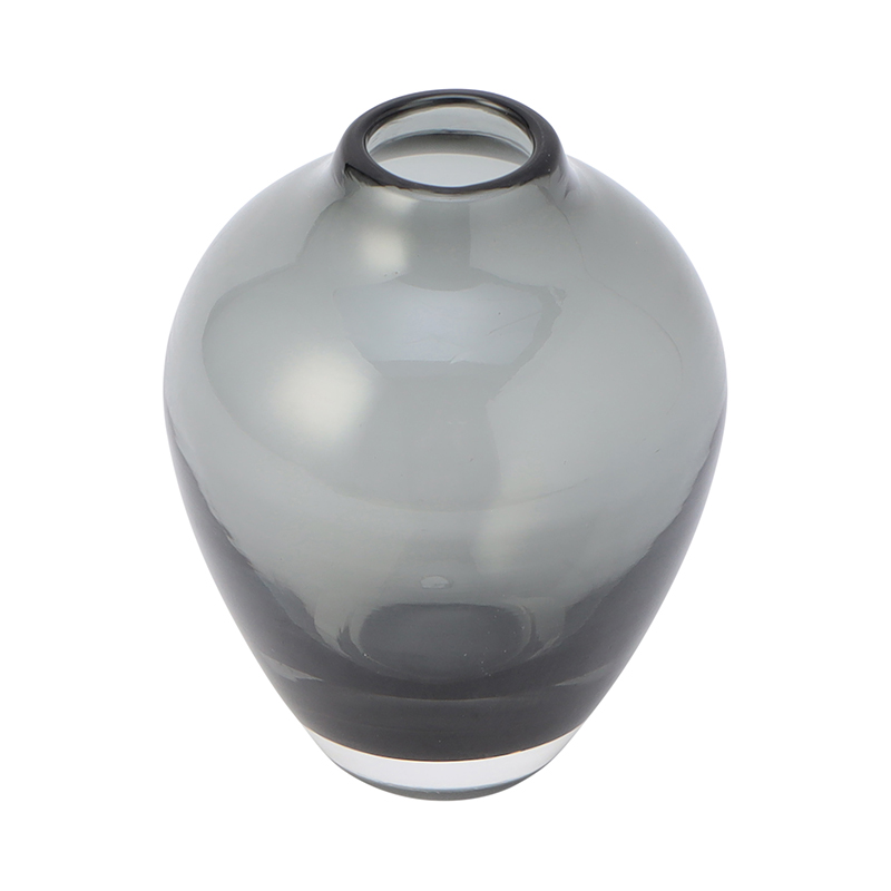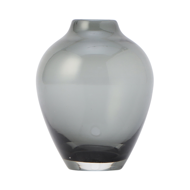 スモークグレーが涼しげな、フルート型のベースは、背が高く、丸みを帯びた球根のような形をしています。有機的なカーブと繊細なフルートトップが特徴で、繊細な茎や葉を飾るのに最適です。