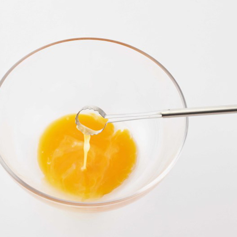 軽い力で卵白も細かく切れて、なめらかに混ざります。ギザ部分でカラザも取れます。