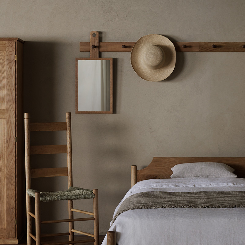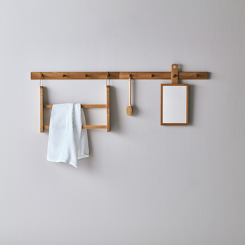 ANN SHAKER シリーズは、シェーカー家具ならではの直線的で簡素なフォルムを大切にし、現代の多様な暮らしにも調和するシンプルでミニマルな形状と機能的なデザインが特徴です。アン シェーカーハンギングミラーは、ペグレールに掛けて使用できる鏡です。