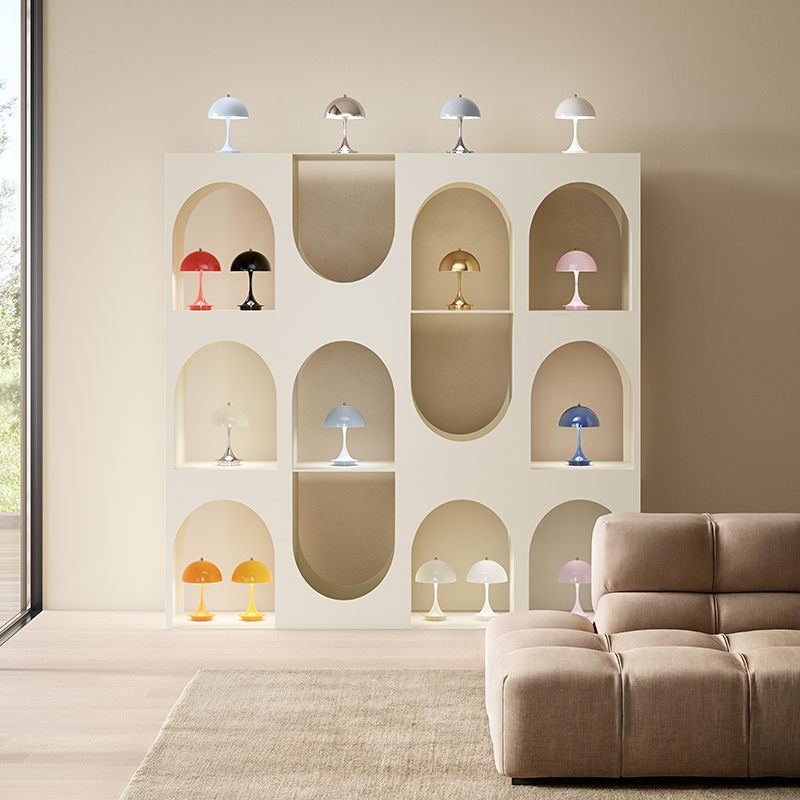 パンテラ160ポータブルは、ヴァーナー・パントンのクラシックなデザインを持ち運びできるように小型化したもので、シェードの直径はわずか160mm。家庭やその他どんなロケーションでも、あらゆる場所で使えます。