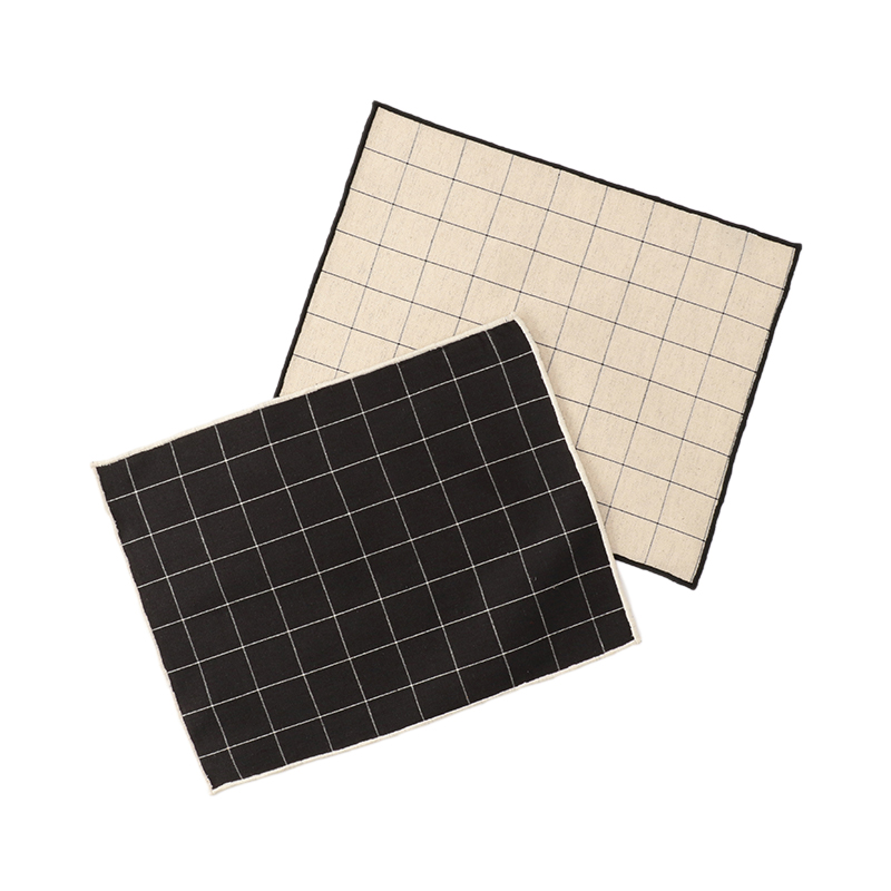 シンプルなチェック柄とモノクロームのパレットが、毎日の食卓にコンテンポラリーな雰囲気をもたらします。