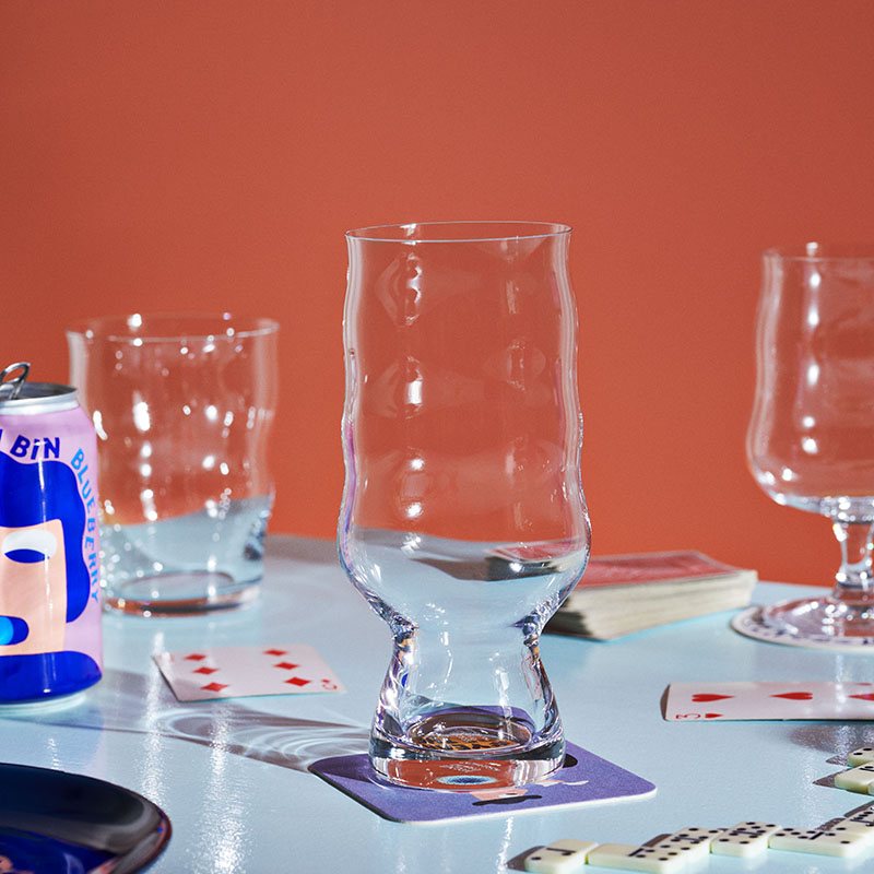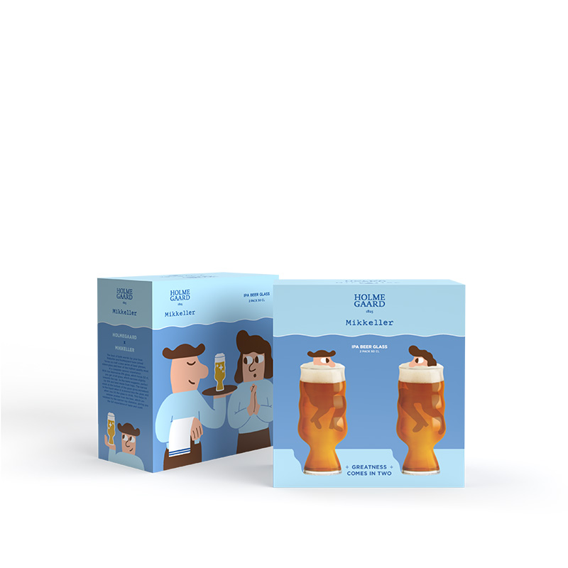 ホルムガードは、デンマークで1825年に創業した伝統と歴史あるデンマーク王室御用達のガラスブランド。1900年代から高度な技術を持つ吹きガラス職人やアーティストとの協働で何世紀にも渡って高品質なグラスウェアを生み出しており、これまでも多くのビアグラスを製造してきました。ミッケラーは、2006年の登場以来、様々なスタイルやフレーバーのビールを生み出し、クラフトビールのパイオニアとしてデンマークのみならず世界中のビールファンを魅了しています。また、アメリカのアーティスト、キース・ショア氏によるキュートで遊び心溢れるビジュアルも人気が高い理由です。IPA グラスは、最も大きなビールグラスで、500 ml 入る印象的なグラスです。