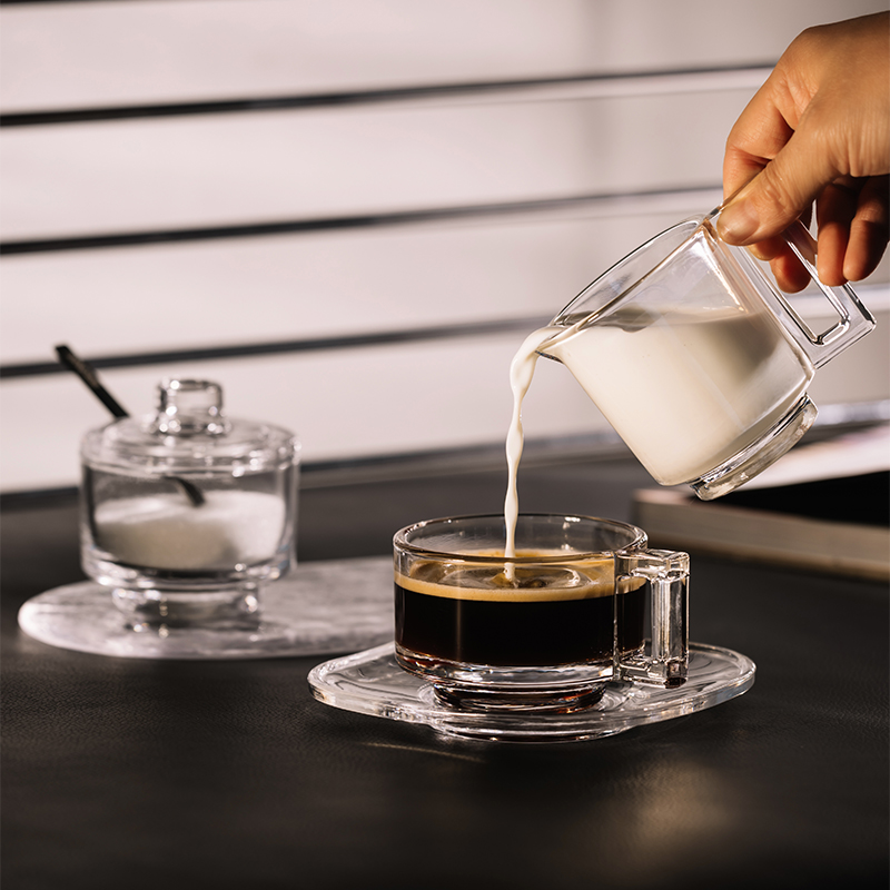 毎日の食卓の完成度を他構えてくれるミルクジャグ&シュガーポットは、スクエアの取っ手が可愛い、ぽってりとしたフォルムが特徴。他にはないデザインで、スパイスやシロップなど調味料だけでなく、コンパクトなカトラリー入れやクリップ入れなど活用方法が色々と想像できるアイテムです。