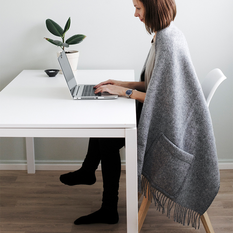 お家の中では、くつろぎの時間はもちろん、朝の起きがけや、テラスで過ごすひととき、またはデスクワーク中など、ふわりと羽織って寒さ対策に活躍します。