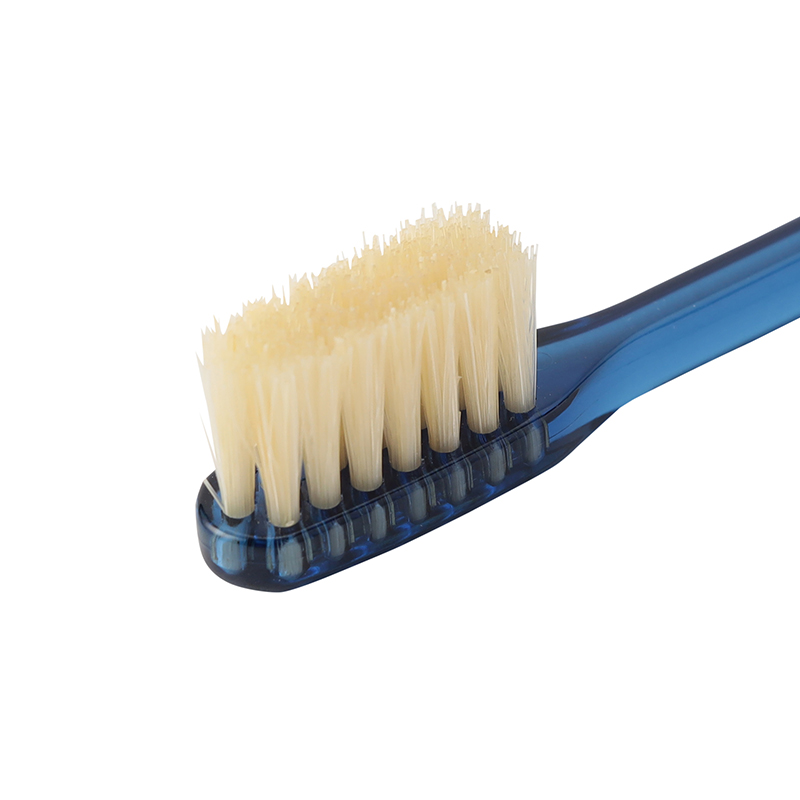 ブラシは細かい部分も磨きやすい、超コンパクトヘッドを採用。ヘッドに使われている天然毛(白馬毛・豚毛)は、歯のエナメル質にやさしく、美白効果が期待でき、何よりも歯ぐき、歯へのあたりが優しい歯磨き感を与えてくれます。また通常のナイロン毛に比べても毛先のひろがりにくさも認められており、一度使ってみると虜になる使用感です。是非一度お試しください。
