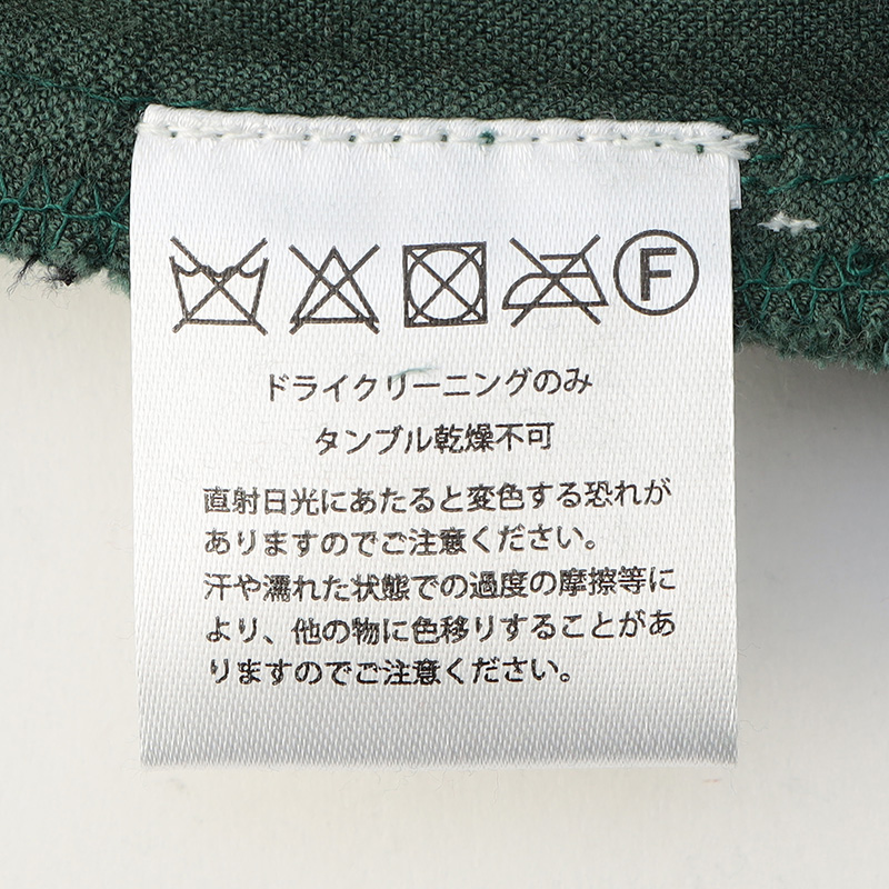 ドライクリーニングのみ、直射日光は変色の恐れがあるためお避け下さい。