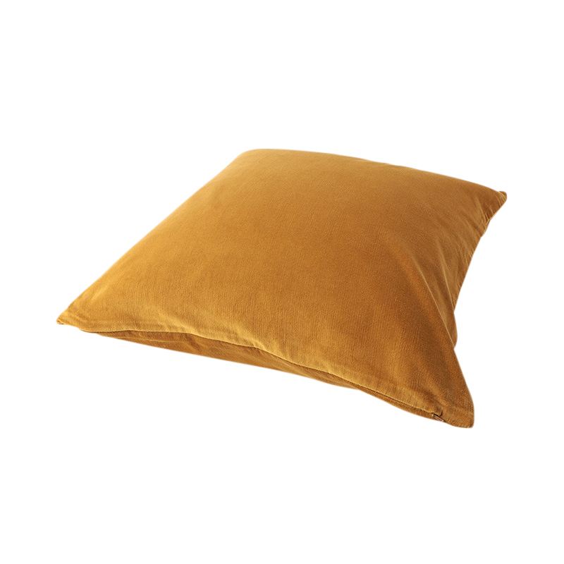 深みのあるオークル色が目を引き、リビングスペースをスタイリッシュに引き立てるとともに、居心地の良い温かみのある雰囲気を作り出します。柔らかな肌触りで、インドの職人によって1点ずつ丁寧に作られています。
