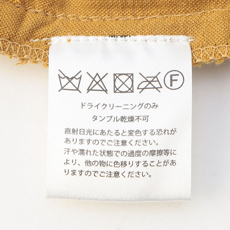 ドライクリーニングのみ、直射日光は変色の恐れがあるためお避け下さい。