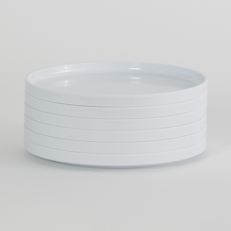 鮮やかな色調で食卓を華やかに彩りながら、明度を抑えたトーンで統一されているため、調和の取れた美しい空間を演出します。全てのアイテムはスタッキング可能で、スペースを節約できるのも魅力です。プレートはスタッキング時に取りやすいように面取り加工が施されています。