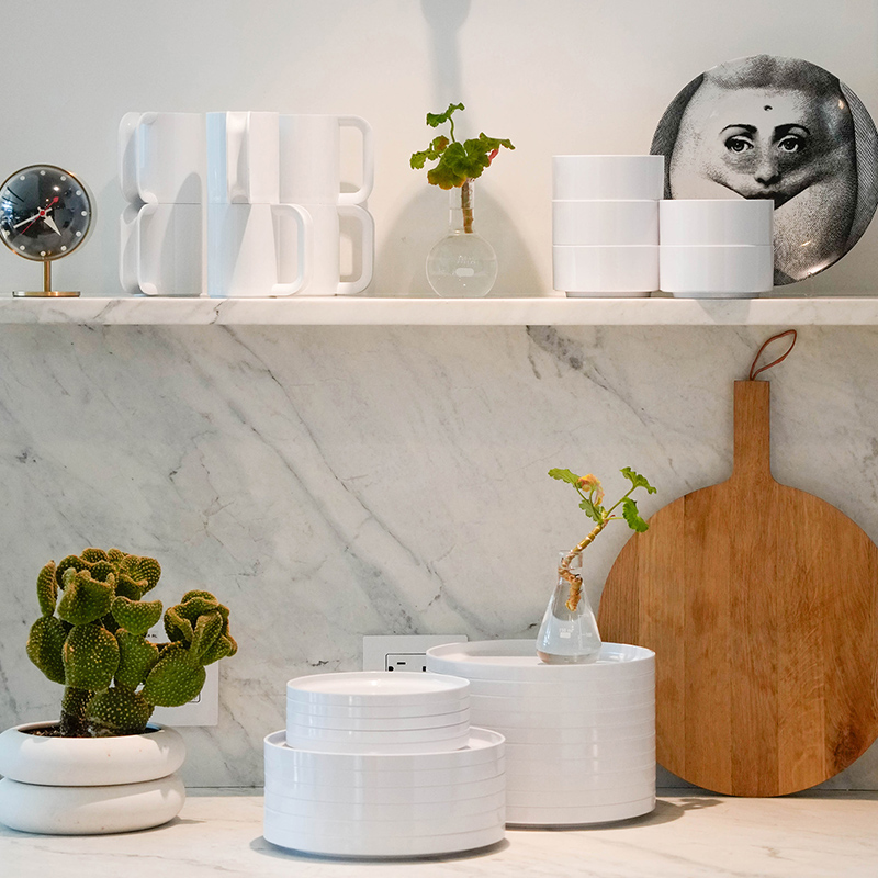 安っぽいとされていたプラスチックの可能性の限界を押し広げ、美しく、機能的で、耐久性に優れた画期的なHeller Dinnerwareは、Compasso d'Oroを受賞し、ニューヨーク近代美術館(MoMA)やメトロポリタン美術館に永久収蔵されています。そして、2024年にリバイブルされました。
