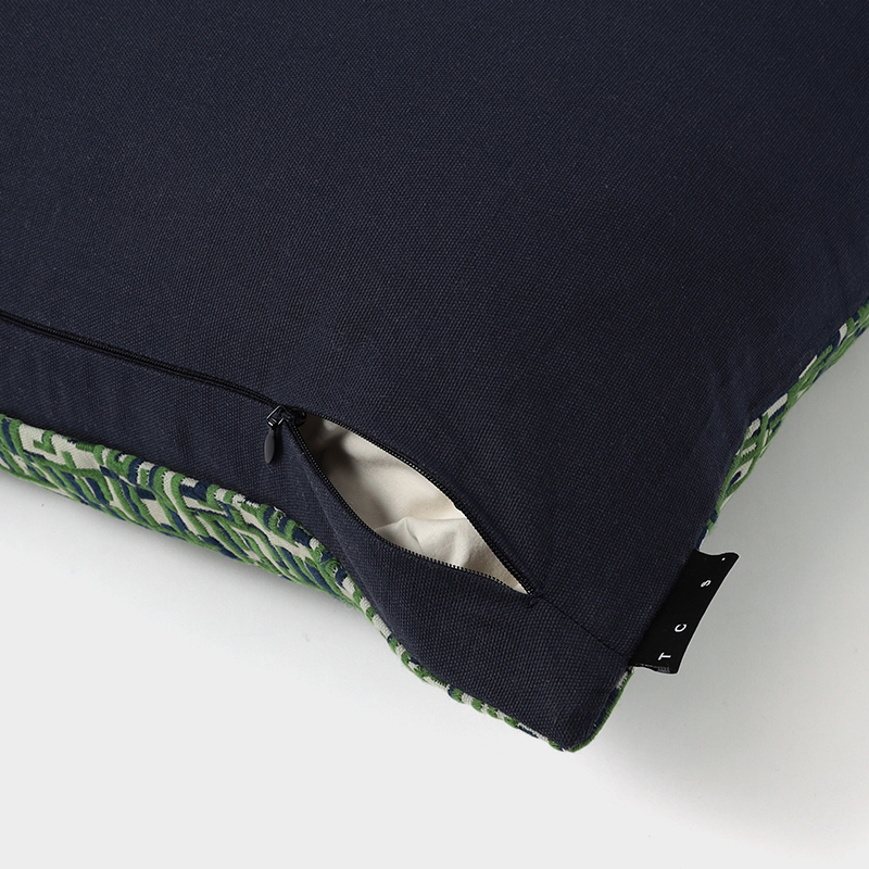 テレンス コンラン卿のテキスタイルデザインにインスパイアされ作られた、美しいクッションカバーは、コットン100%のベースに複雑な多層刺繍が手作業で施され、芸術的な伝統と現代的なデザインが融合しています。