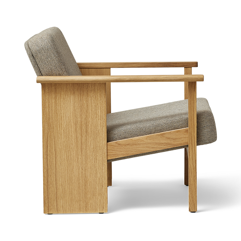 特徴的な木製サイドパネルと、純粋で耐久性のある原材料と人間工学に基づいた柔らかい形状を組み合わせたエレガントなテキスタイル張りが特徴です。
