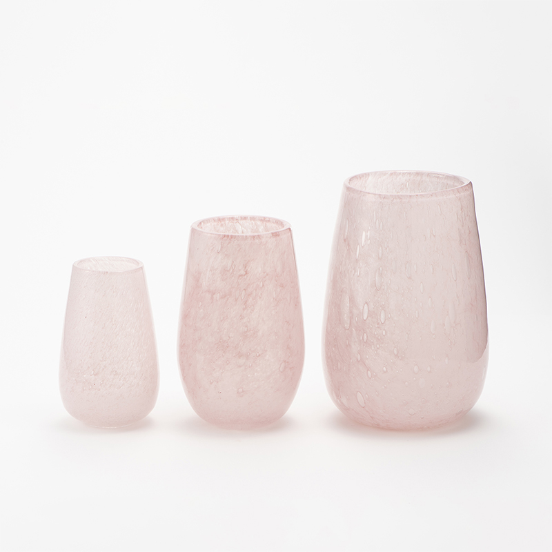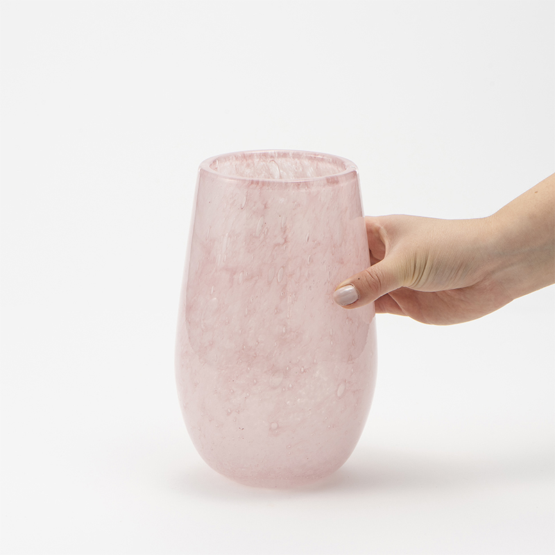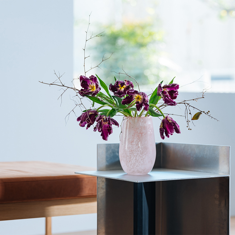 古くからガラス生産が盛んな東欧の工場で、熟練した職人たちの吹きガラス製法によってひとつひとつ丁寧に作られた花器は、手に取ると冷たいガラスの中にハンドメイドのあたたかな温もりが感じられます。