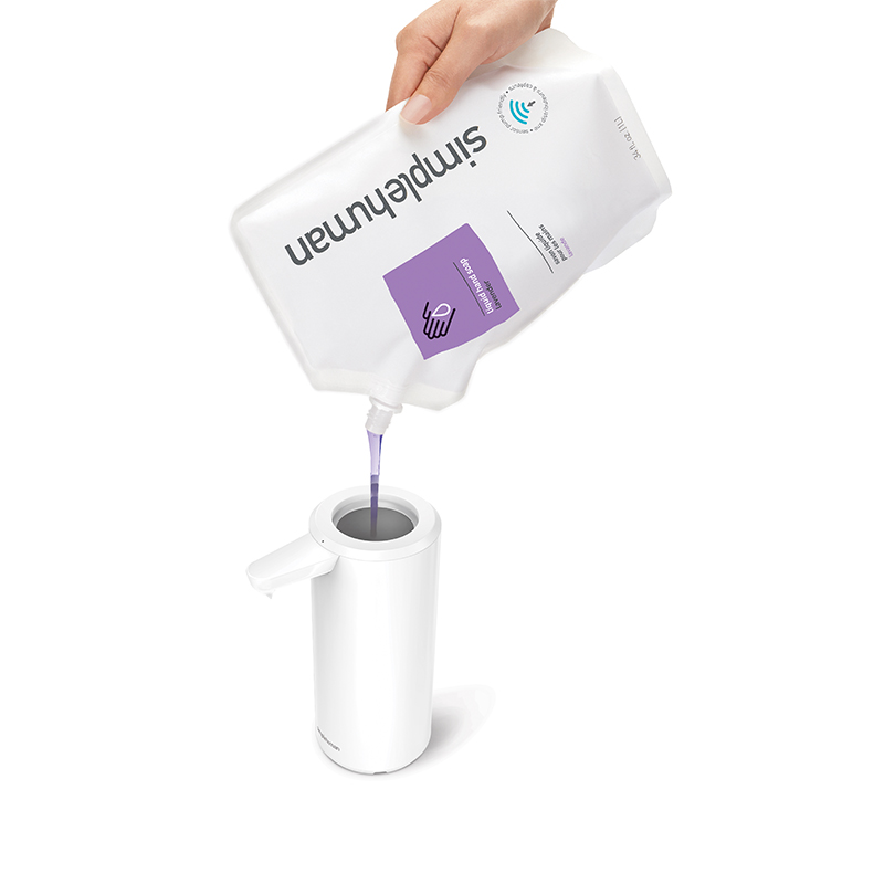 センサーからの距離でソープの量を調整できる画期的な充電式のソープディスペンサー。