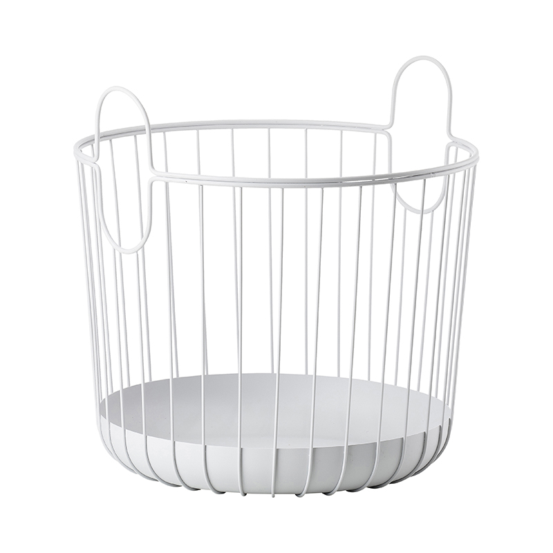 スチール製バスケット。バスルームでタオルや洗濯物を入れたり、リビングに置いてクッションやブランケット入れ、マガジン収納、観葉植物のポットカバーとしても使えます。XL / L / M / S サイズあり、卓上用のミニバスケットはペン立て、バスルームではアクセサリー入れ、キッチンではフルーツや野菜入れに。アーチ状のグリップデザインが個性的です。