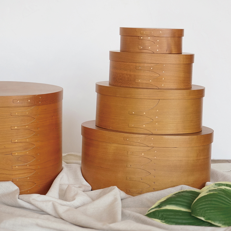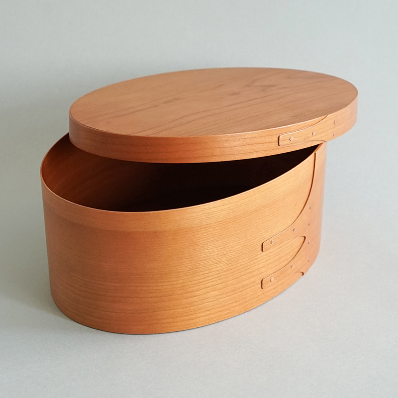 シェーカーボックスは薄い木材を曲げて作られる、シンプルな楕円型の木箱です。