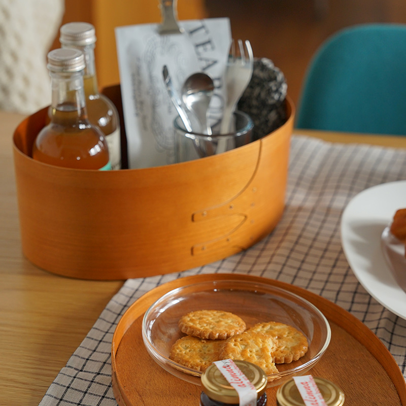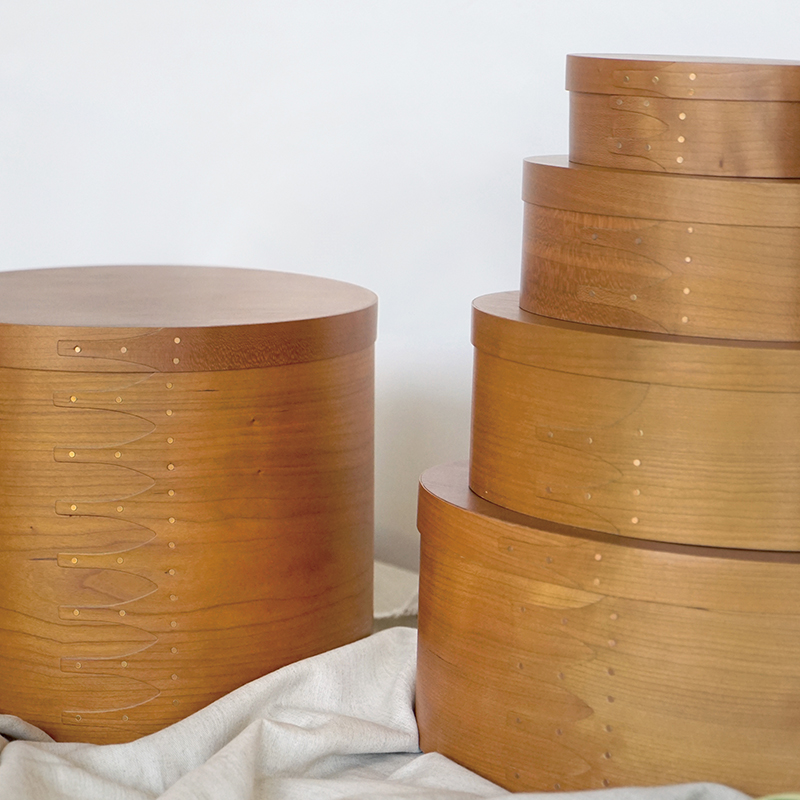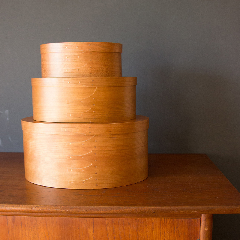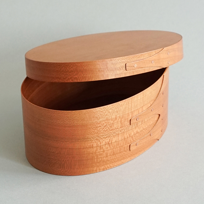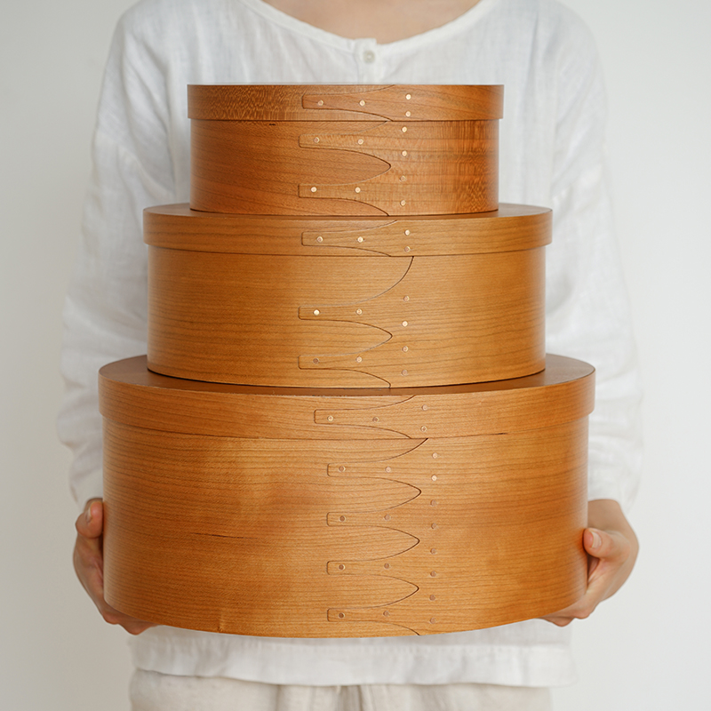 シェーカーボックスは薄い木材を曲げて作られる、シンプルな楕円型の木箱です。