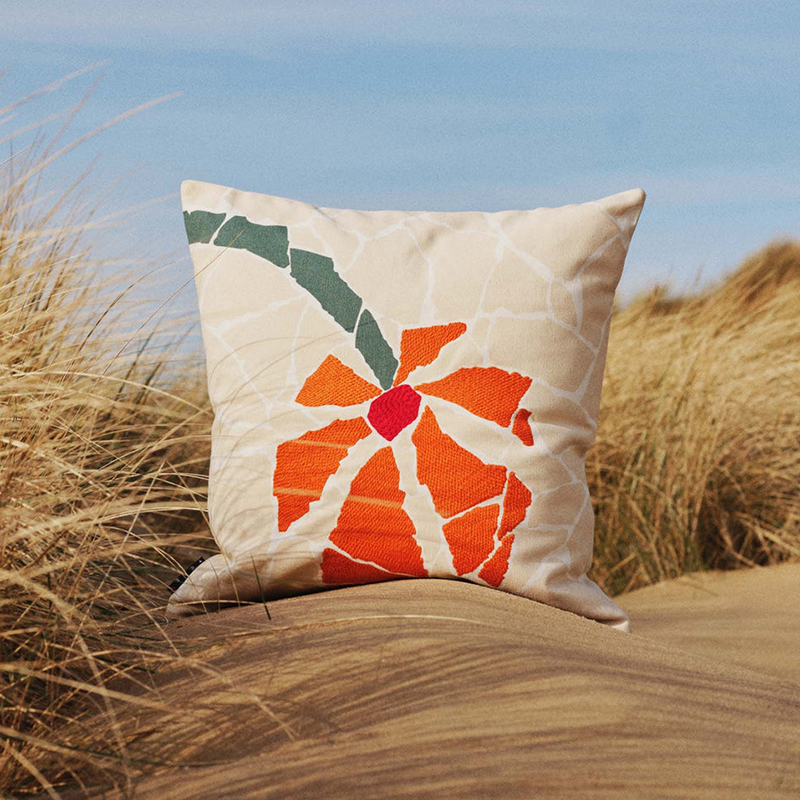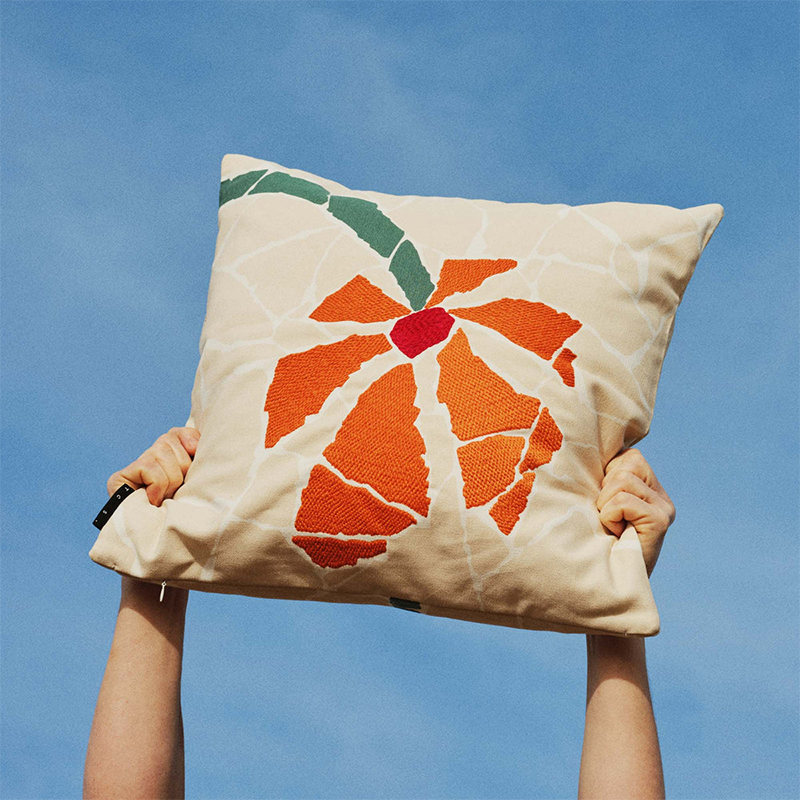 The Conran Shop(ザ・コンランショップ)オリジナルのイギリス人アーティスト、チャーリー・シェパードによるテキスタイルコレクション「ブロークン・ステム・ディプティック クッション」は、表から裏へと自然に流れるように配置された、抽象的な花のモチーフが特徴です。