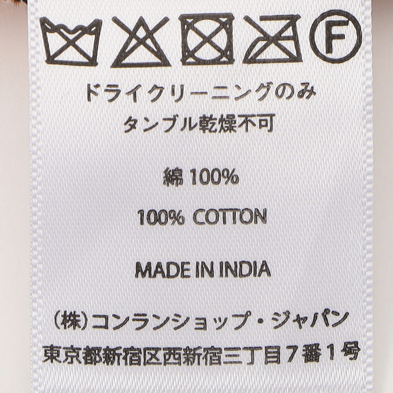 ドライクリーニングのみ、直射日光は変色の恐れがあるためお避け下さい。