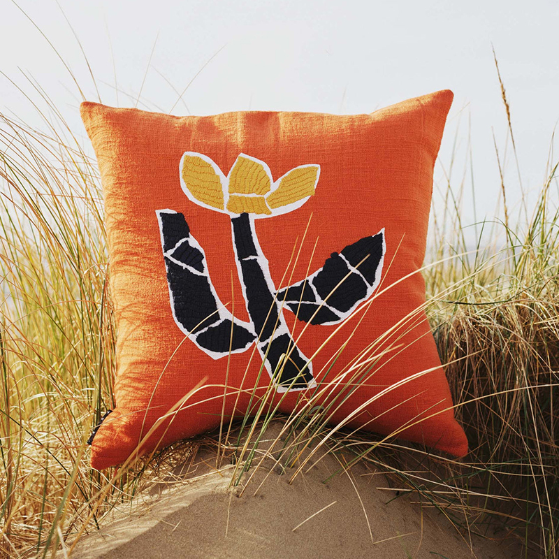 ソリタリーフラワークッションは、シェパードがフラワーモチーフを現代的にアレンジし、自身のモザイクスタイルを大胆なスクリーンプリントで表現しています。コットン100%の生地に、ペーストプリント技法と繊細な手刺繍を施し、丁寧に仕上げられています。鮮やかなカラーの背景に映えるデザインが、お部屋に温もりと芸術的なアクセントを添えます。【商品について】