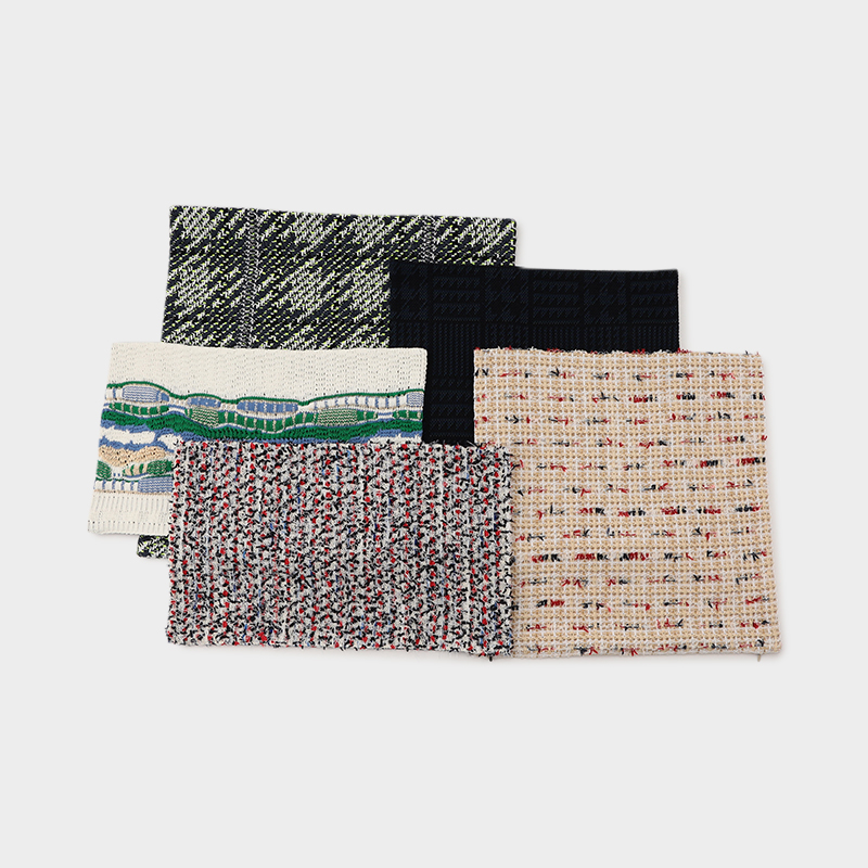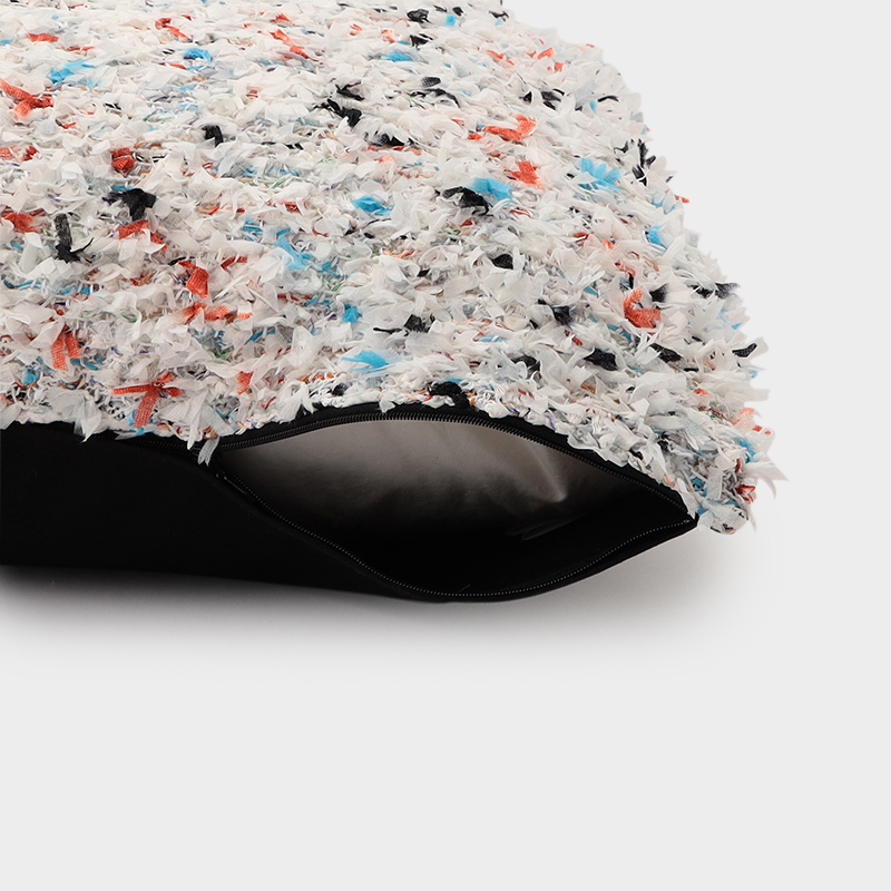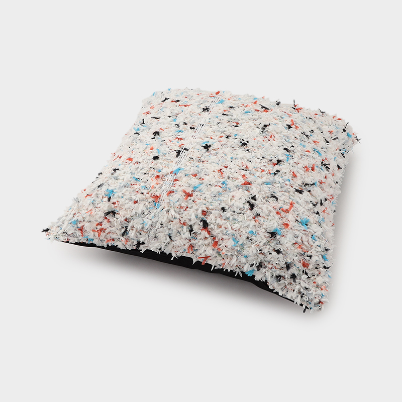 過去に開発・生産された編地たちから柄を選定し、組み合わせで制作されたクッションカバーです。