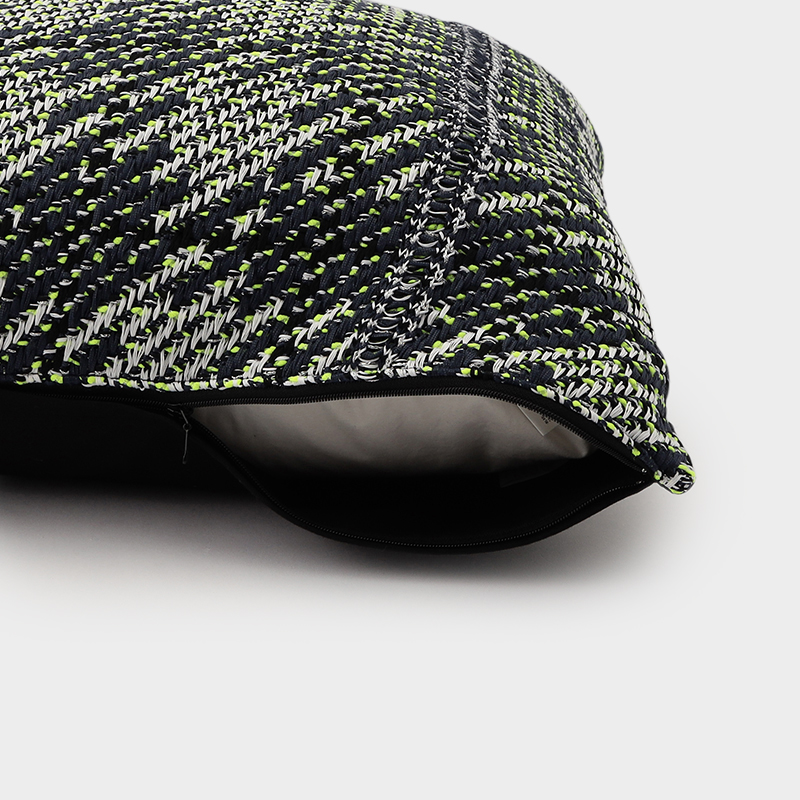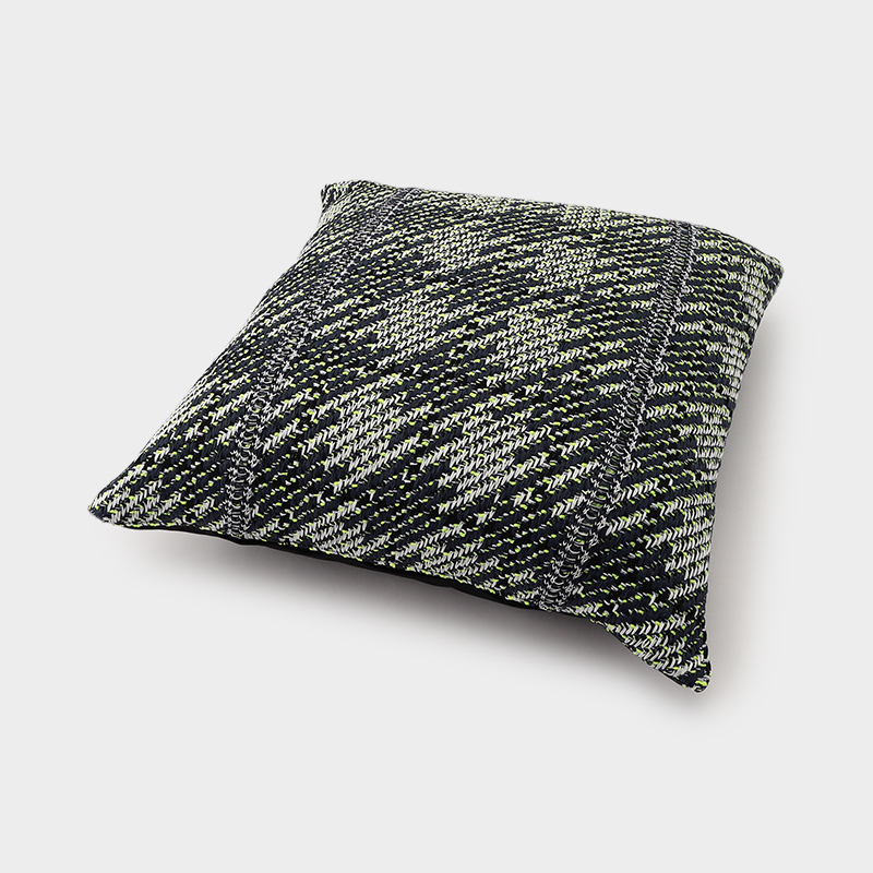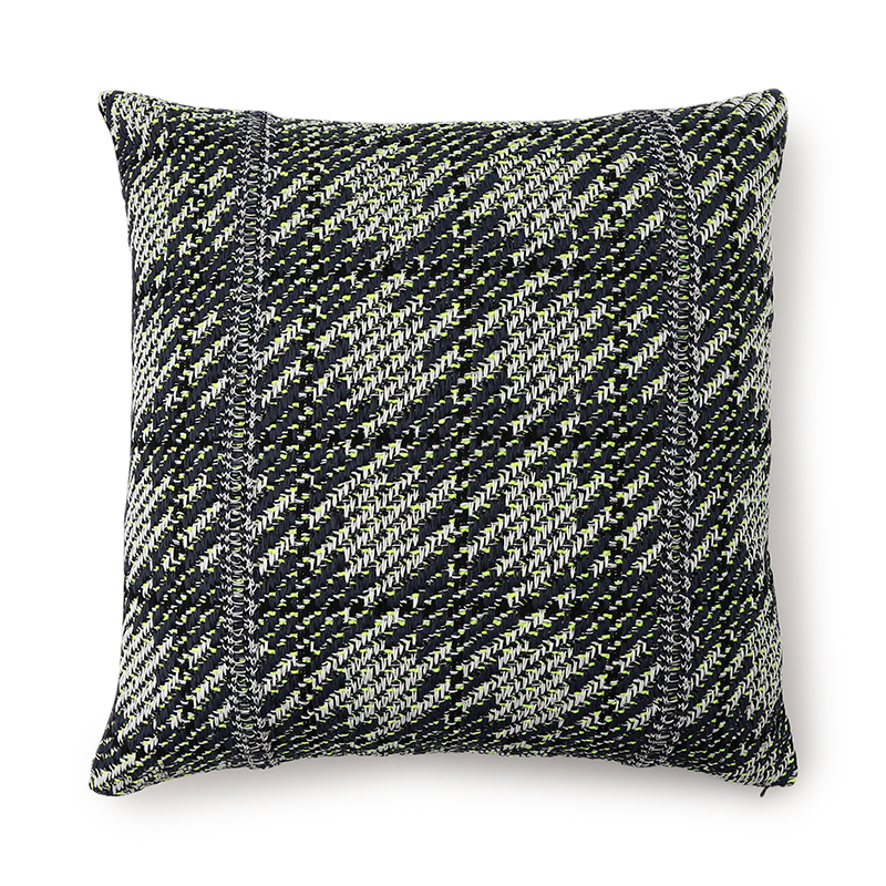 過去に開発・生産された編地たちから柄を選定し、組み合わせで制作されたクッションカバーです。