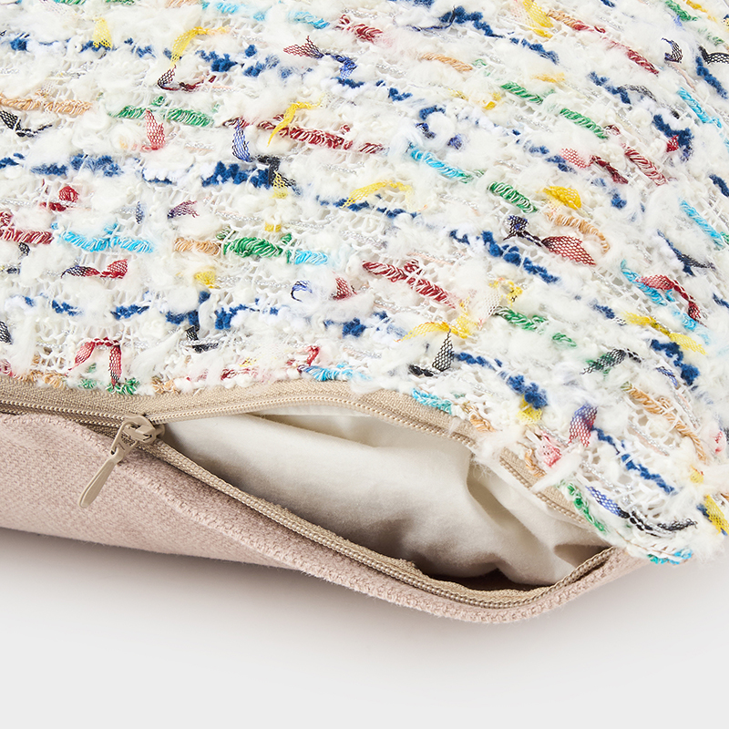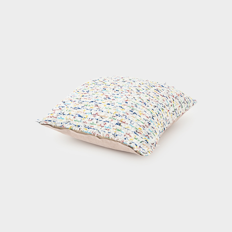 過去に開発・生産された編地たちから柄を選定し、組み合わせで制作されたクッションカバーです。