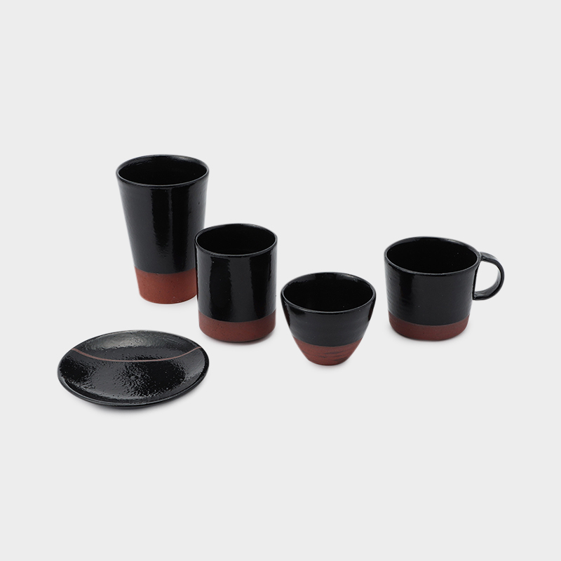 黒光りする能登瓦を意識して調合された釉薬が、器に深みと魅力を与えています。一部には釉薬を施さず、瓦の赤い土の生地が見えるデザインとしました。