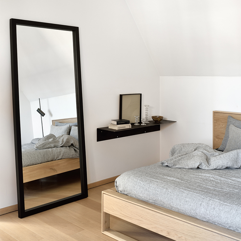 使用される木材は、FSCR(森林管理協議会)の認証を受けた、環境・社会・経済面すべてにおいて適切に管理された森林から伐採された木材を使用しています。ライトフレームミラーは、壁に立てかけて使用することも、壁に取り付けて使用することもできます。