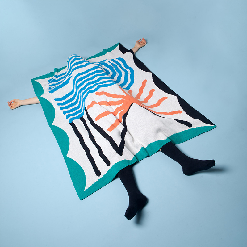 現在のラインナップはブランケット、ミニブランケット、ニットブランケットなど。活動を通して、お気に入りのアートワークと共に生活する楽しさを伝えている。
