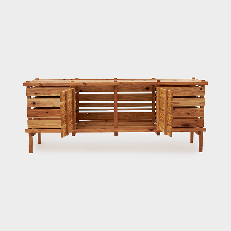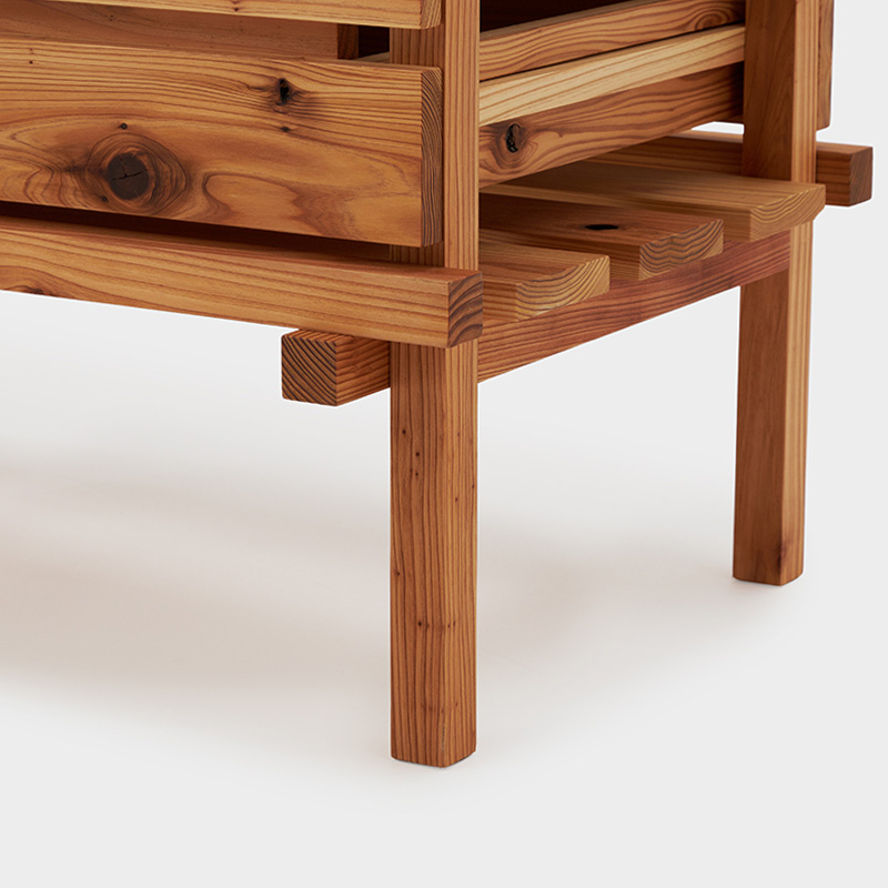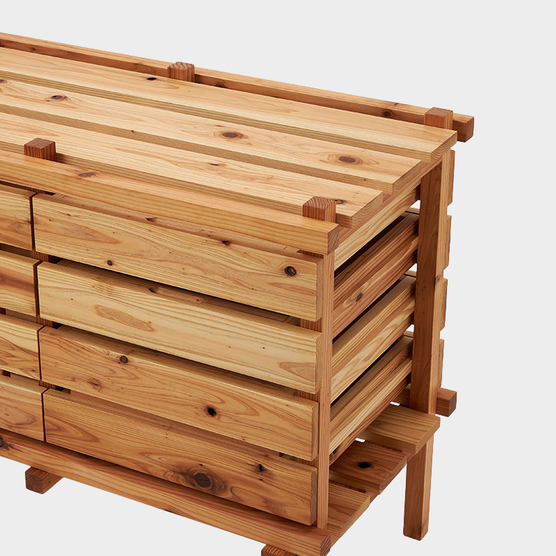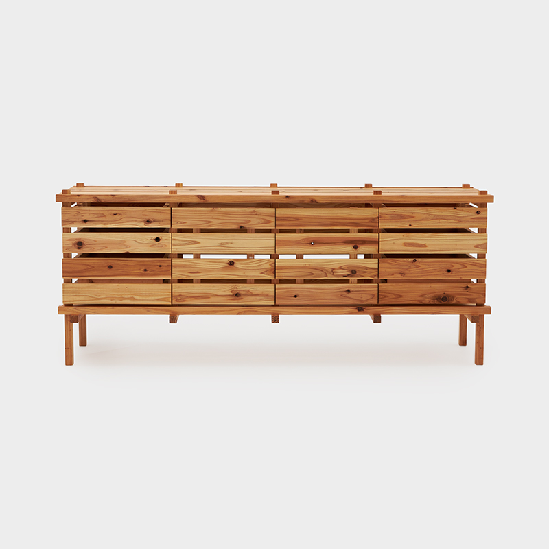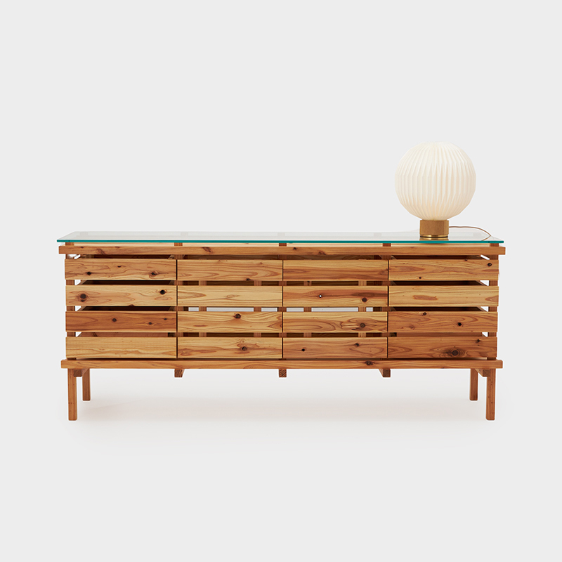 本シリーズのデザインを手がけたのは、長野県軽井沢を拠点に活動するデザイナー 須長 檀(すなが だん)氏。素材には国産の杉材を採用し、特に需要の低下によって放置が問題となっている森林資源を有効活用。製品はすべて国内で製造されています。
